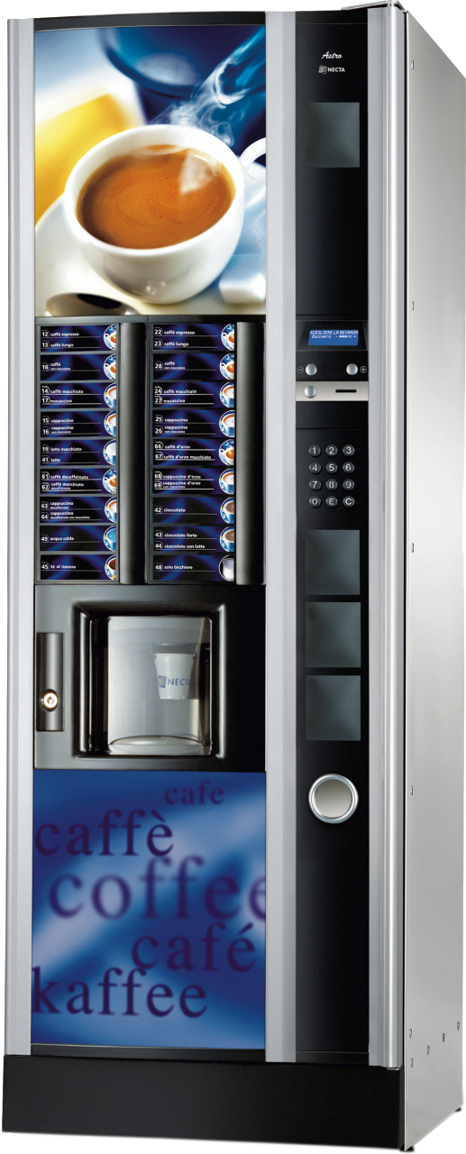 Középkategóriás meleg ital automata, 600 pohár tároló kapacitással. Instant + eszpresszó kávé változatban, 18 választási lehetőséggel.