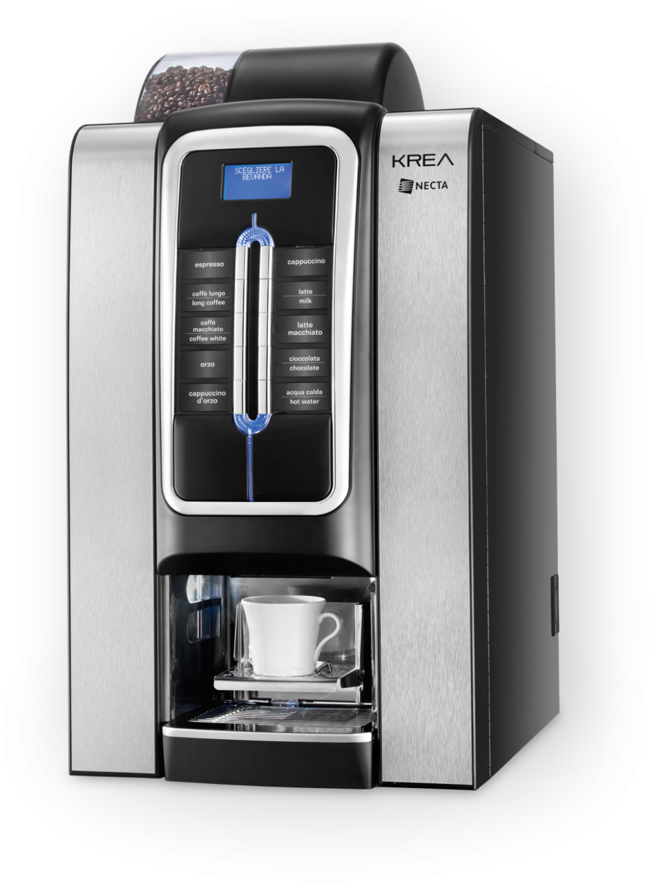 A Krea ideális megoldás szállodák, közösségek, önkiszolgáló helyszínek számára. A modern és elegáns kialakítást gazdagítják a LED lámpák, krómozott nyomógombok és a kezelő-panelt körülvevő keret, valamint az elegáns oldalsó grafikus panelek.